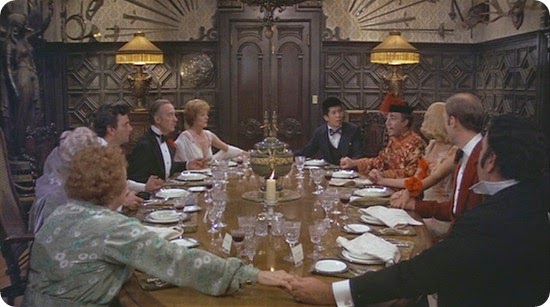 La serata riserva incidenti ridicoli, ma anche inquietanti attentati che lasciano presagire l'imminenza di un crimine. D'improvviso, tra i convitati fa una teatrale apparizione Lionel Twain. Egli rivela che a mezzanotte in punto sarà commesso un delitto, il cui colpevole e la cui vittima siedono entrambi fra le persone riunite a tavola. Promette inoltre un premio di un milione di dollari a colui che risolverà il caso. Da questo momento gli ospiti vengono lasciati soli e, prima dell'ora convenuta, sono distratti da una serie di colpi di scena e avvenimenti paradossali. Pochi istanti prima della mezzanotte però si ritrovano nuovamente in sala da pranzo, dove decidono di tenersi per mano così che un eventuale delitto non possa avvenire o comunque non possa sfuggire agli occhi dei testimoni.
